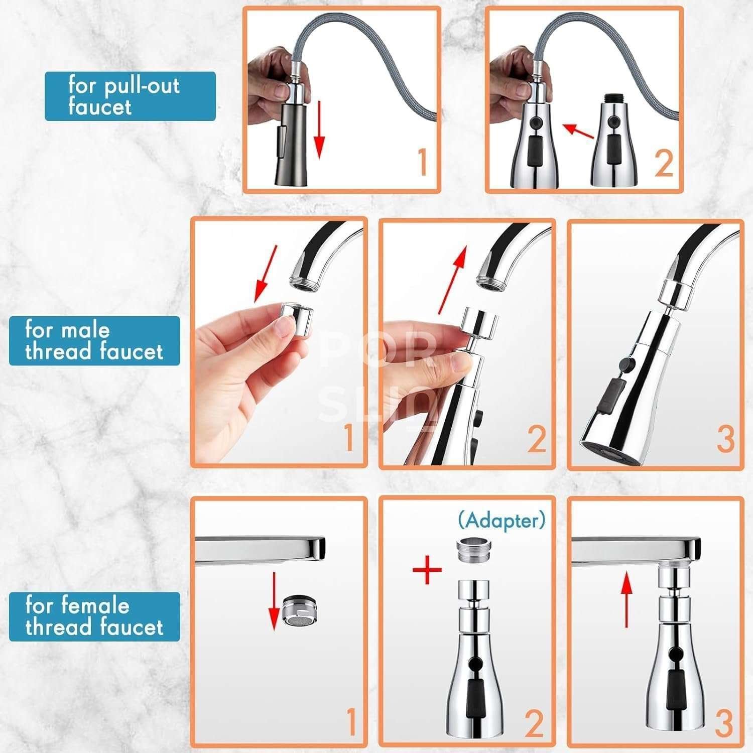 Easily adjust the water flow direction with the 360? swivel head?perfect for rinsing dishes, cleaning the sink, or washing fruits and vegetables.