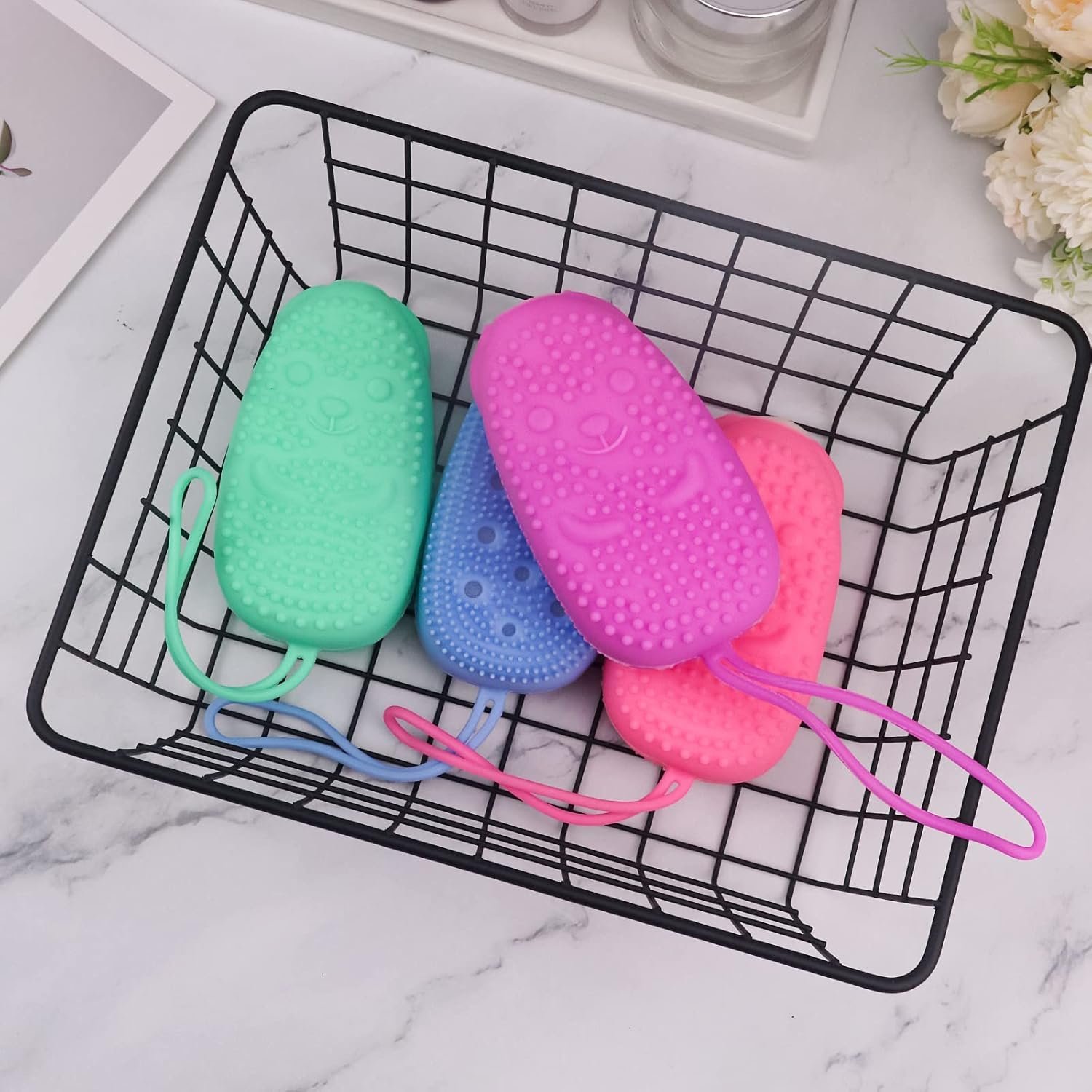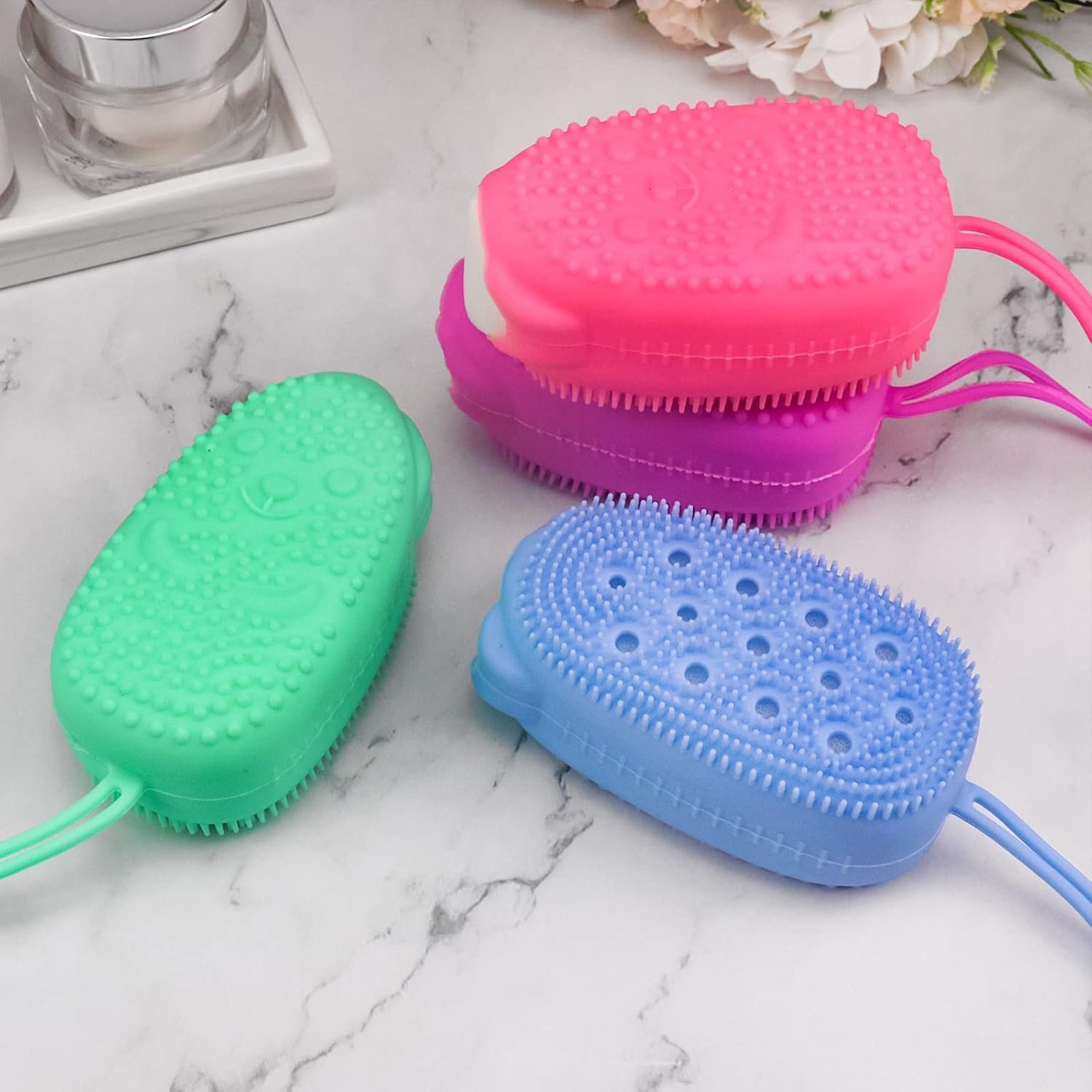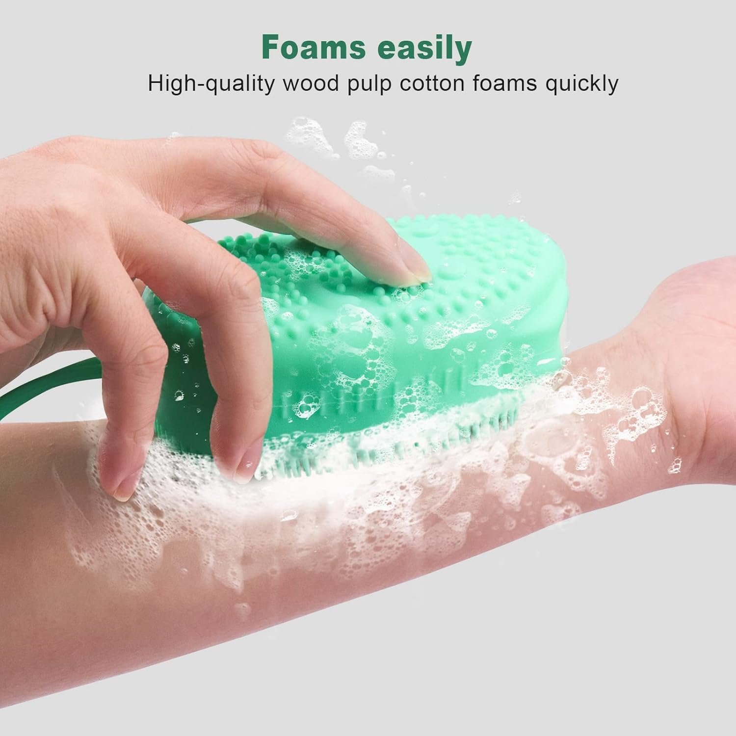 This soft silicone bath brush features a built-in shampoo dispenser, making bathing more convenient and effective while gently exfoliating skin.