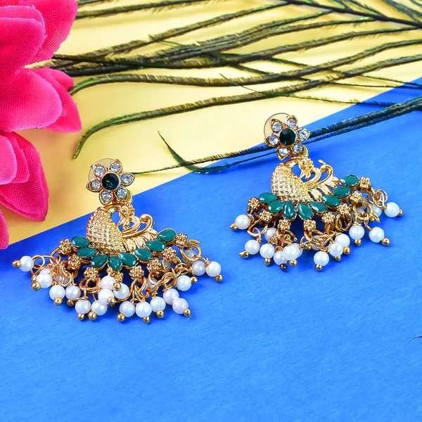 Beautiful Peacock Design American Diamond Pearl Earrings (1 Pair) – Elegant Traditional Jewelry for Women, Perfect for Weddings & Festivals