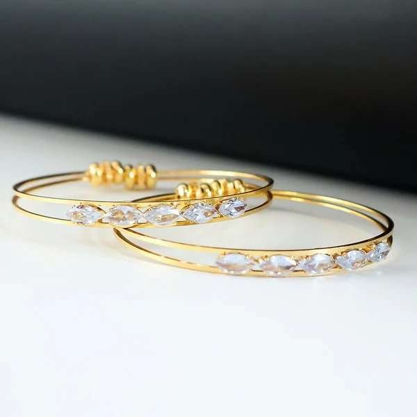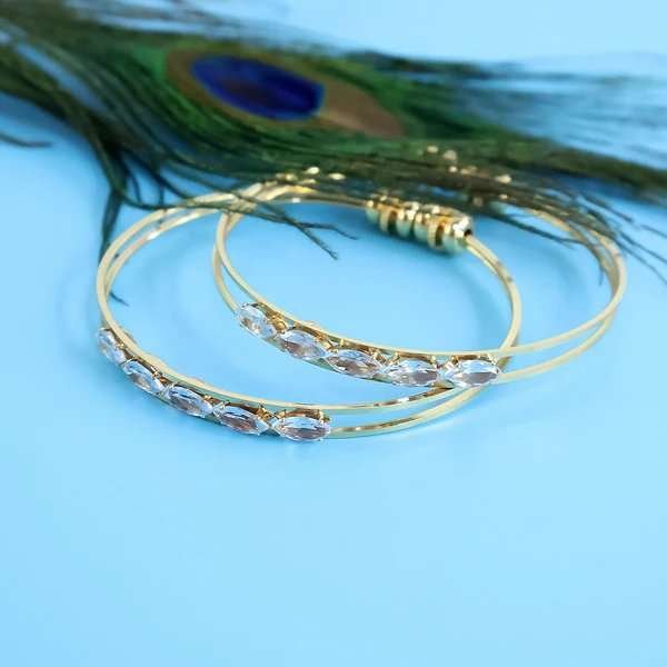Crystal Studded Dual-Line Bangles – Gold Plated Bangles with Sparkling Crystals for Women, Perfect for Weddings & Special Events