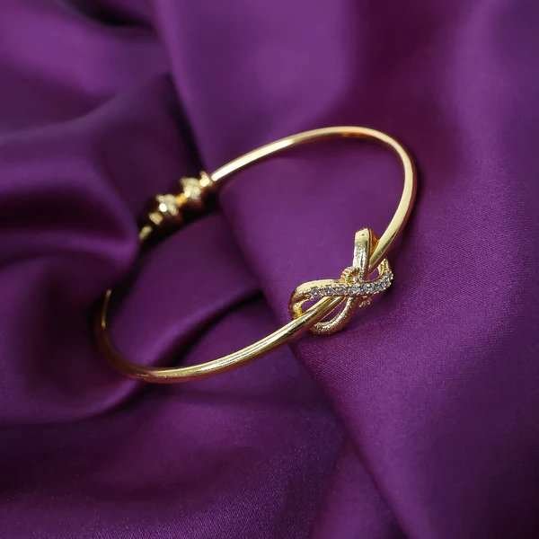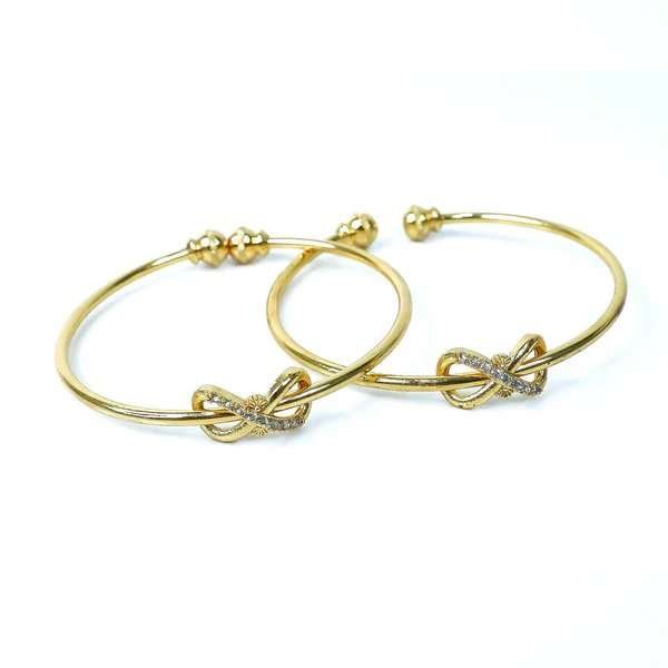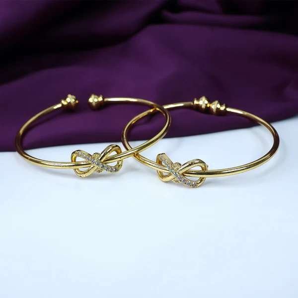 These Elegant Knot Design Bangles feature intricate stone detailing, adding a modern twist to traditional gold-plated jewelry.