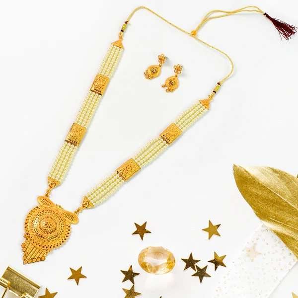 Elevate your look with the radiant beauty of this exquisite moti necklace and enjoy compliments wherever you go.