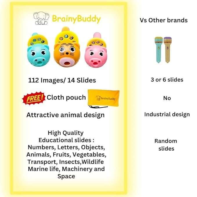 Morison Mini Slide Projector Torch for Kids ? Educational Flashlight Toy with 3 Image Slides | Animal & Space Projection Torch Light for Learning & Fun